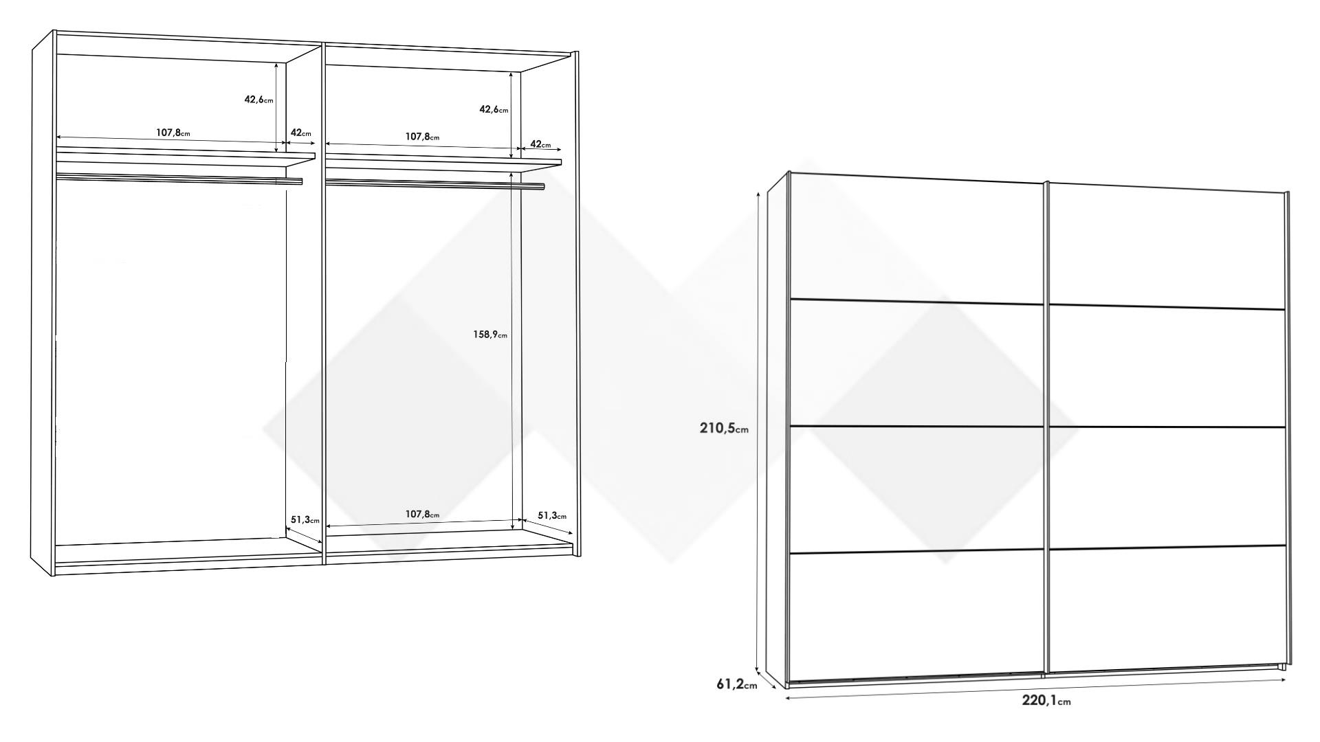 ✓ плъзгащи врати ✓ два лоста за закачалки ✓ 2 рафта ✓ функционално разпределение ✓ стабилна конструкция ✓ модерен дизайн ✓качествена изработка