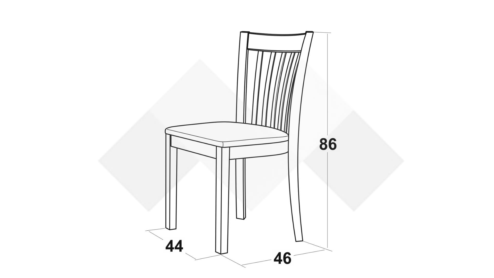 Столът е със здрава конструкция от естествена букова дървесина за устойчивост и стабилност, а лаковото покритие добавя елегантност. Седалката е проектирана с твърда основа, тапицирана с дунапрен за повече комфорт при седене и завършен със здрава текстилна дамаска, лесна за поддръжка.