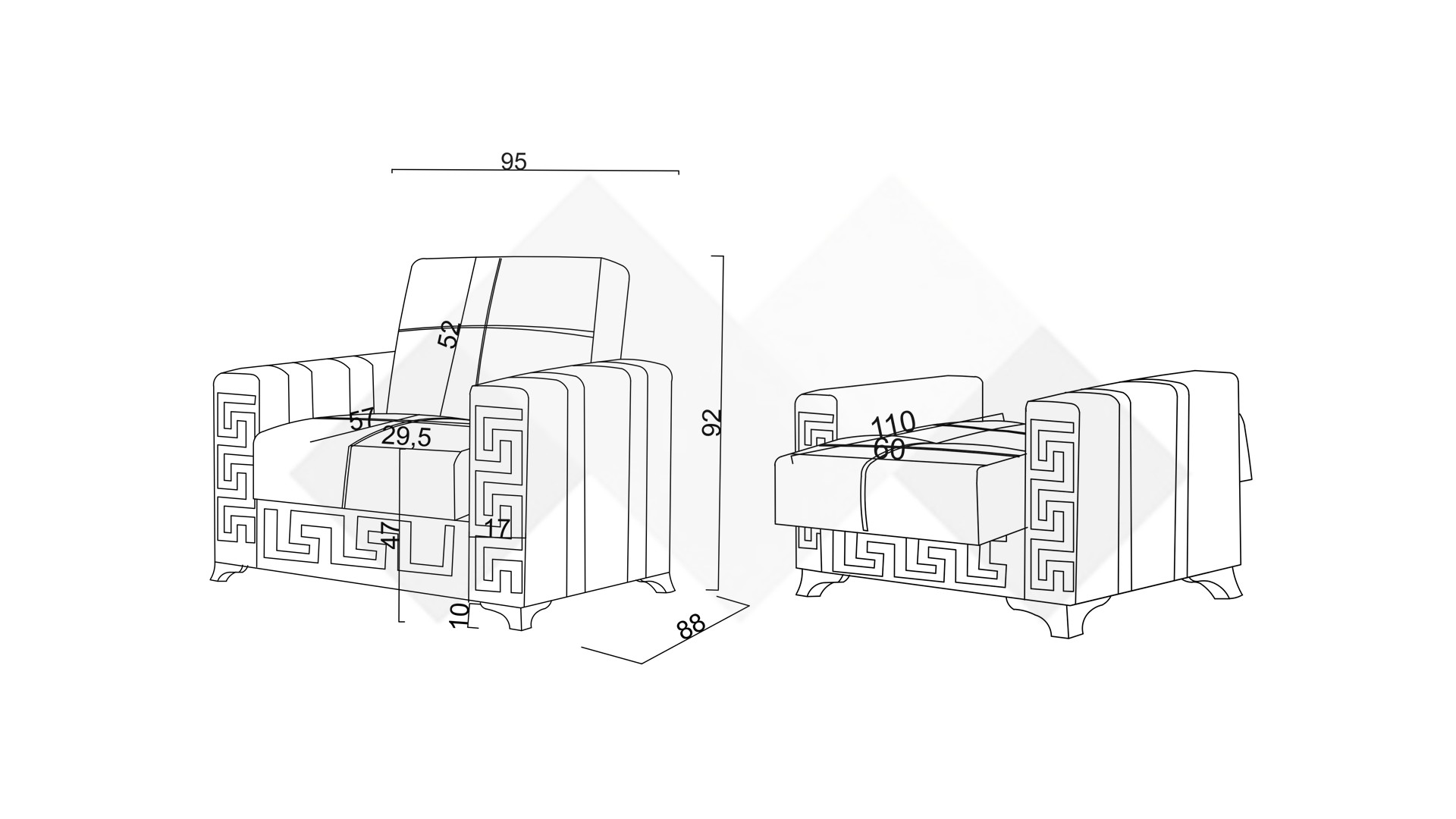 Диванът има здрава конструкция с бонел пружина, отличаваща се с устойчивост за дълъг период на употреба.