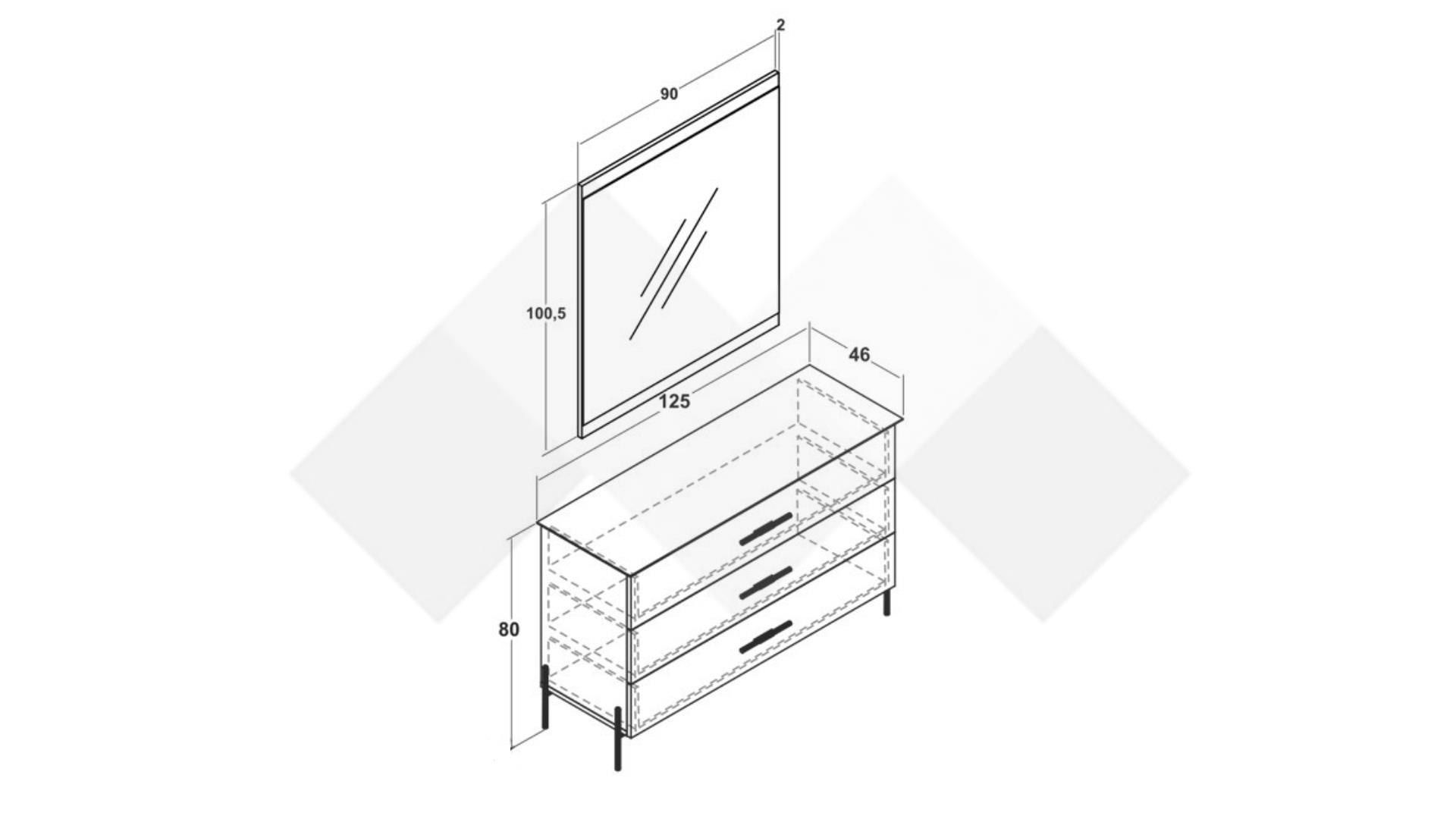Скринът ти предоставя три просторни чекмеджета, в които да съхраниш както бельо и дрехи, така и малки уреди или козметика. Плотът е достатъчно просторен, за да подредиш върху него декорация или козметиката си и в комбинация с огледалото да го превърнеш в своето кътче за разкрасяване.