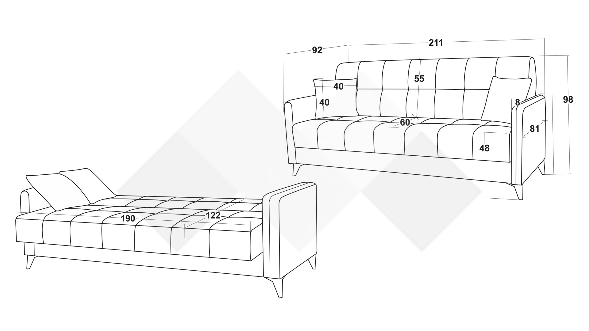 Благодарение на клик-клак механизма, диванът се трансформира бързо и лесно в удобно легло с площ за сън 190/122 см. Само с едно движение можеш да го разгънеш или прибереш, което го прави изключително удобен за ежедневна употреба или за настаняване на гости.