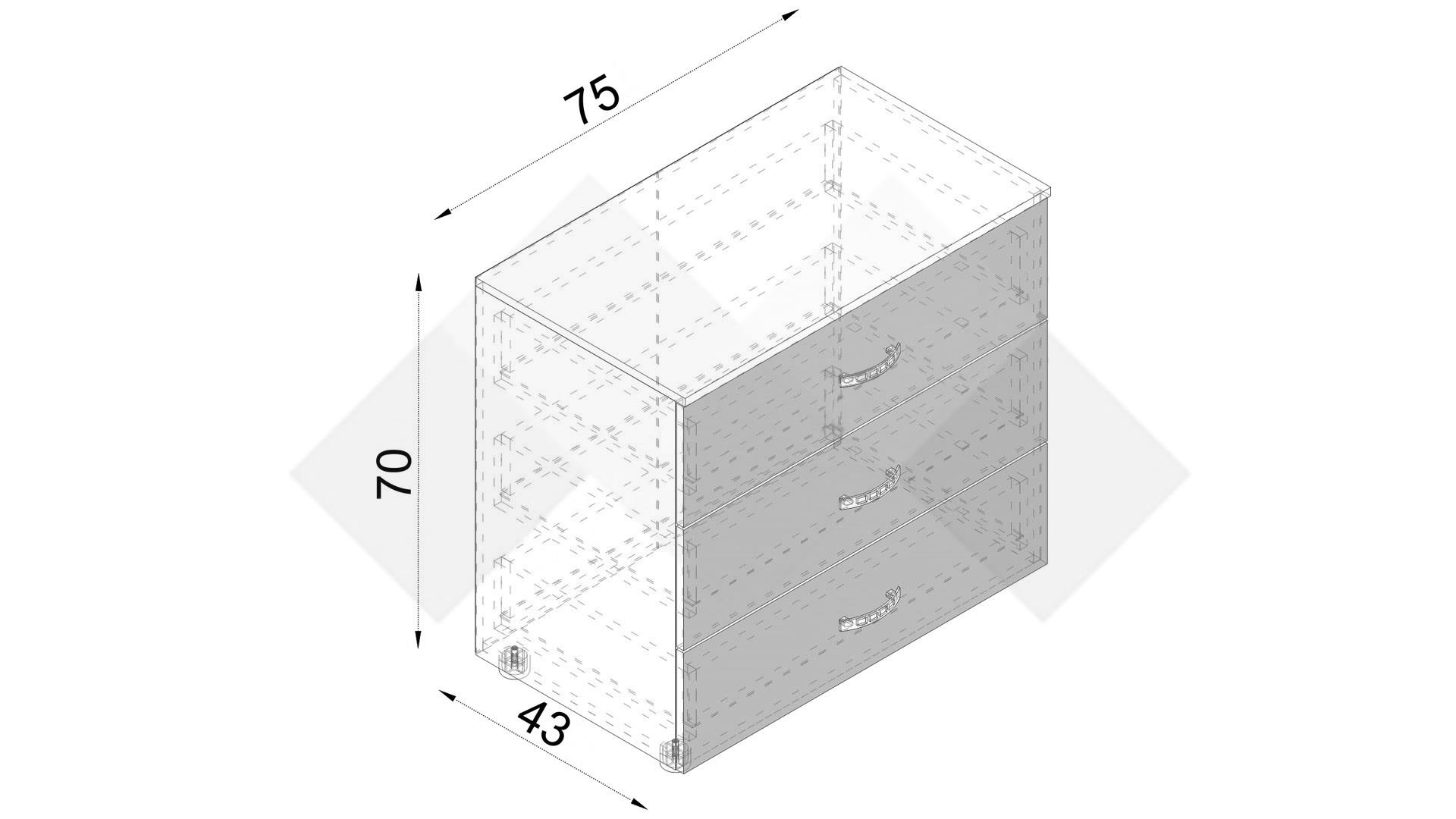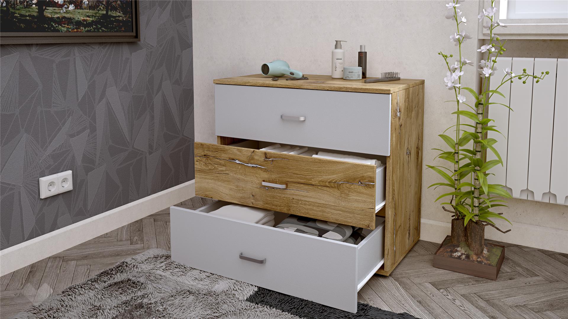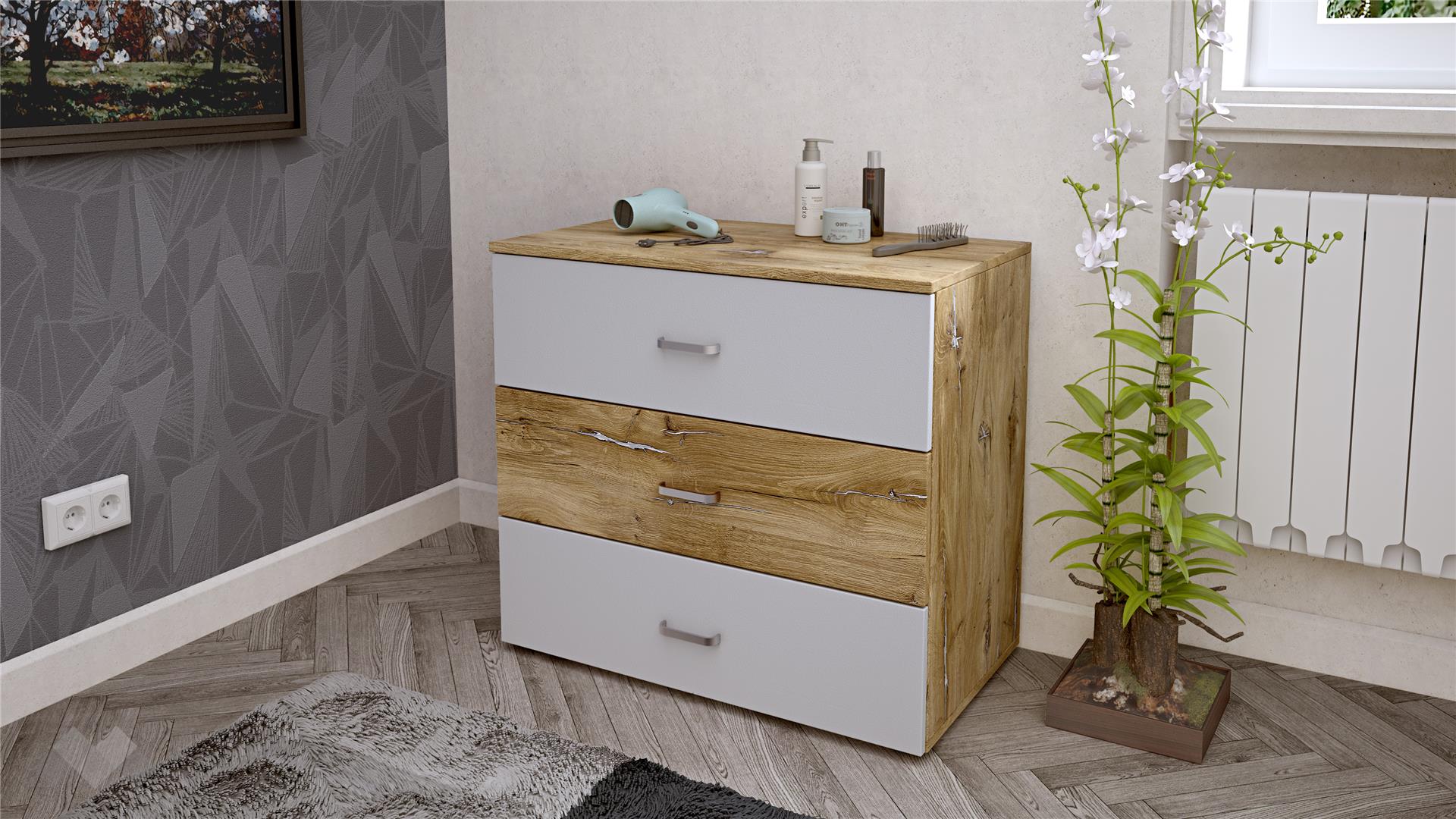 Трите чекмеджета са удобни за подреждане на сгънати дрехи, обувки и кутии за съхранение. Просторния плот ти предоставя място за вещи, които да са ти винаги под ръка.