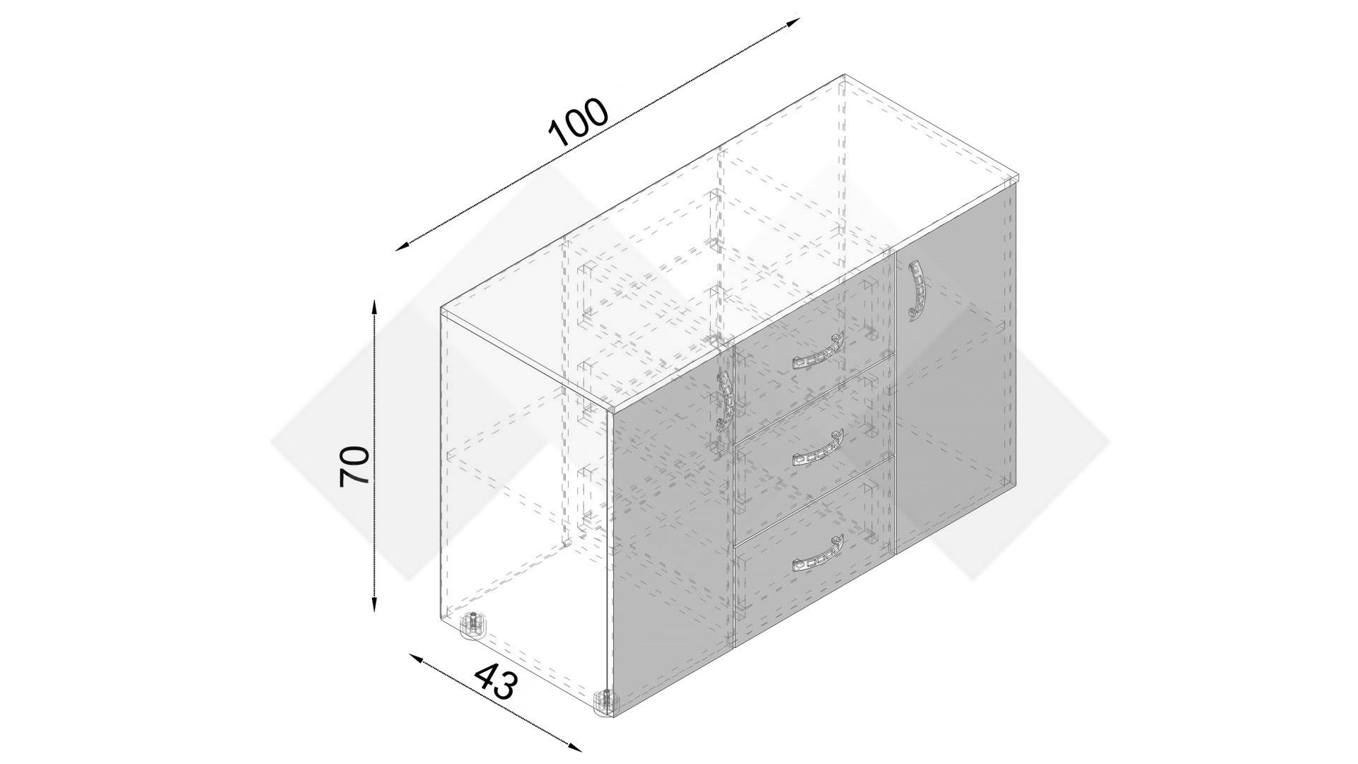 Трите чекмеджета и двта рафта зад вратите са удобни за подреждане на сгънати дрехи, обувки и кутии за съхранение. Просторния плот ти предоставя място за вещи, които да са ти винаги под ръка.