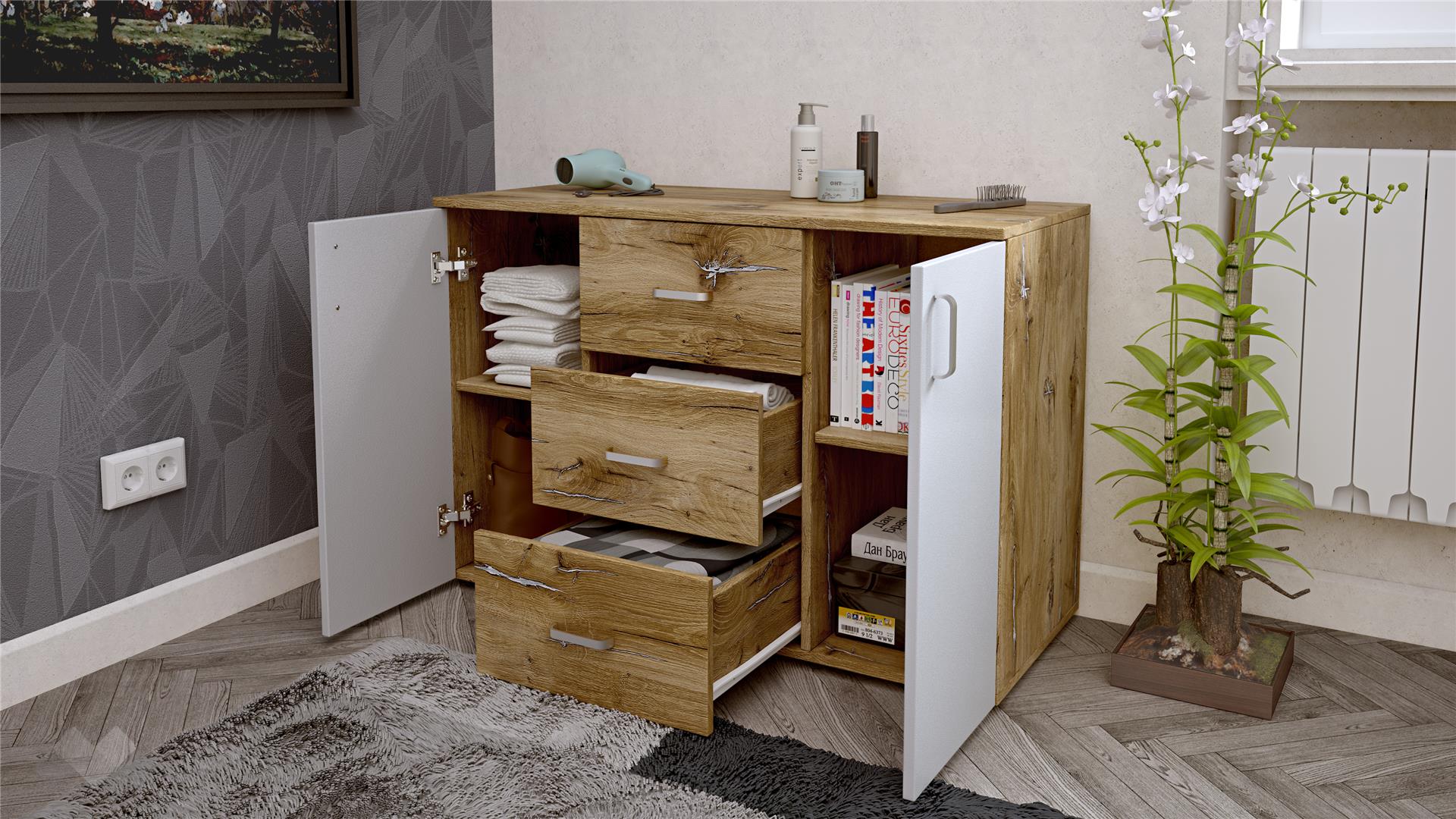 ✓ 16 мм ПДЧ ✓ 3 чекмеджета ✓ 2 врати ✓ 2 рафта ✓модерен дизайн ✓ практично разпределение ✓ качествена изработка