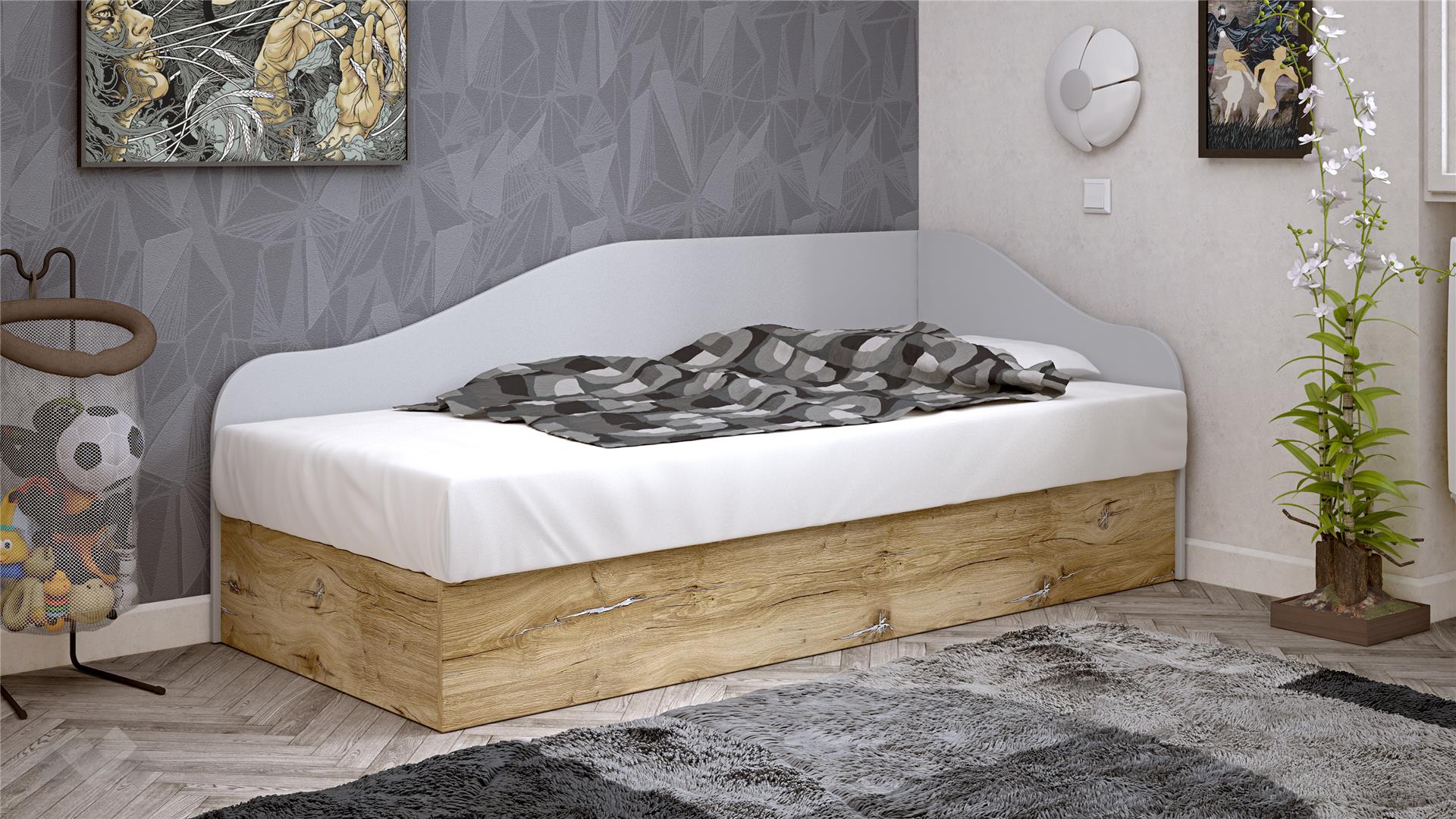 Ъглово легло 82/190Селтиккелтски дъб със светло сиво