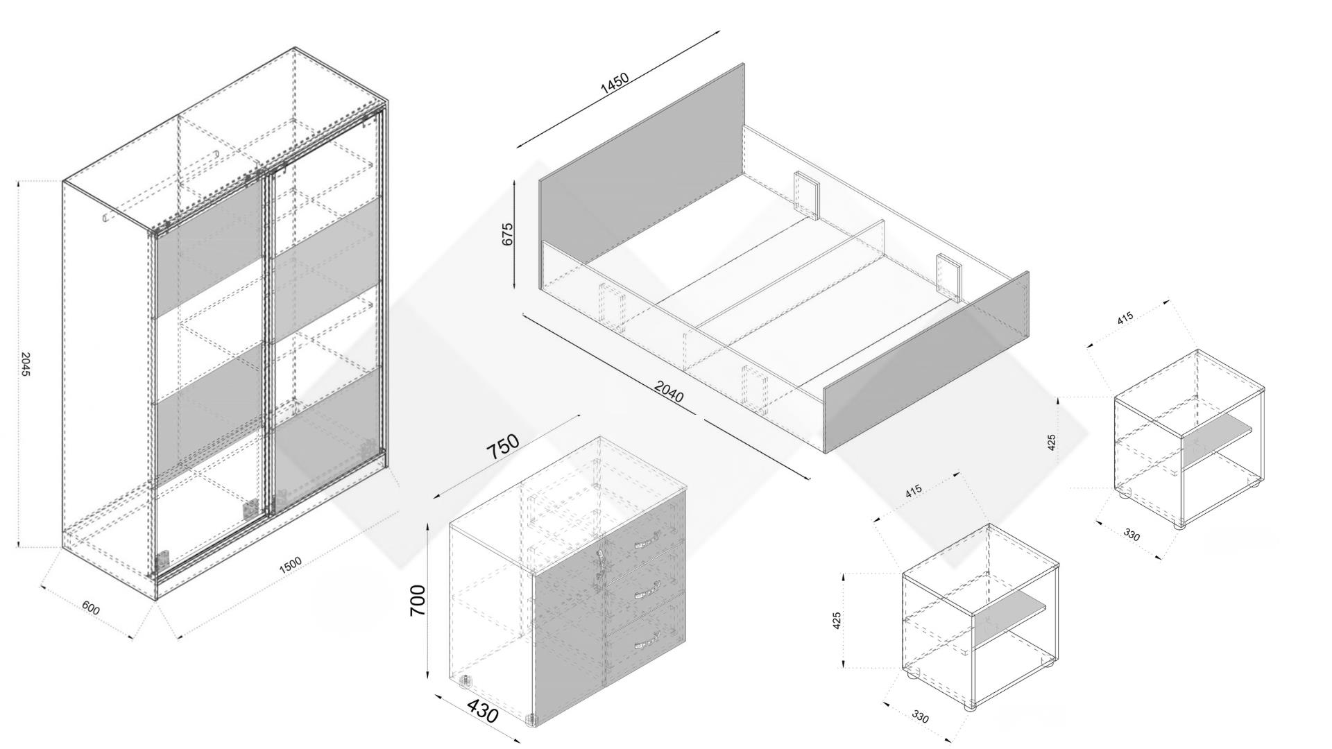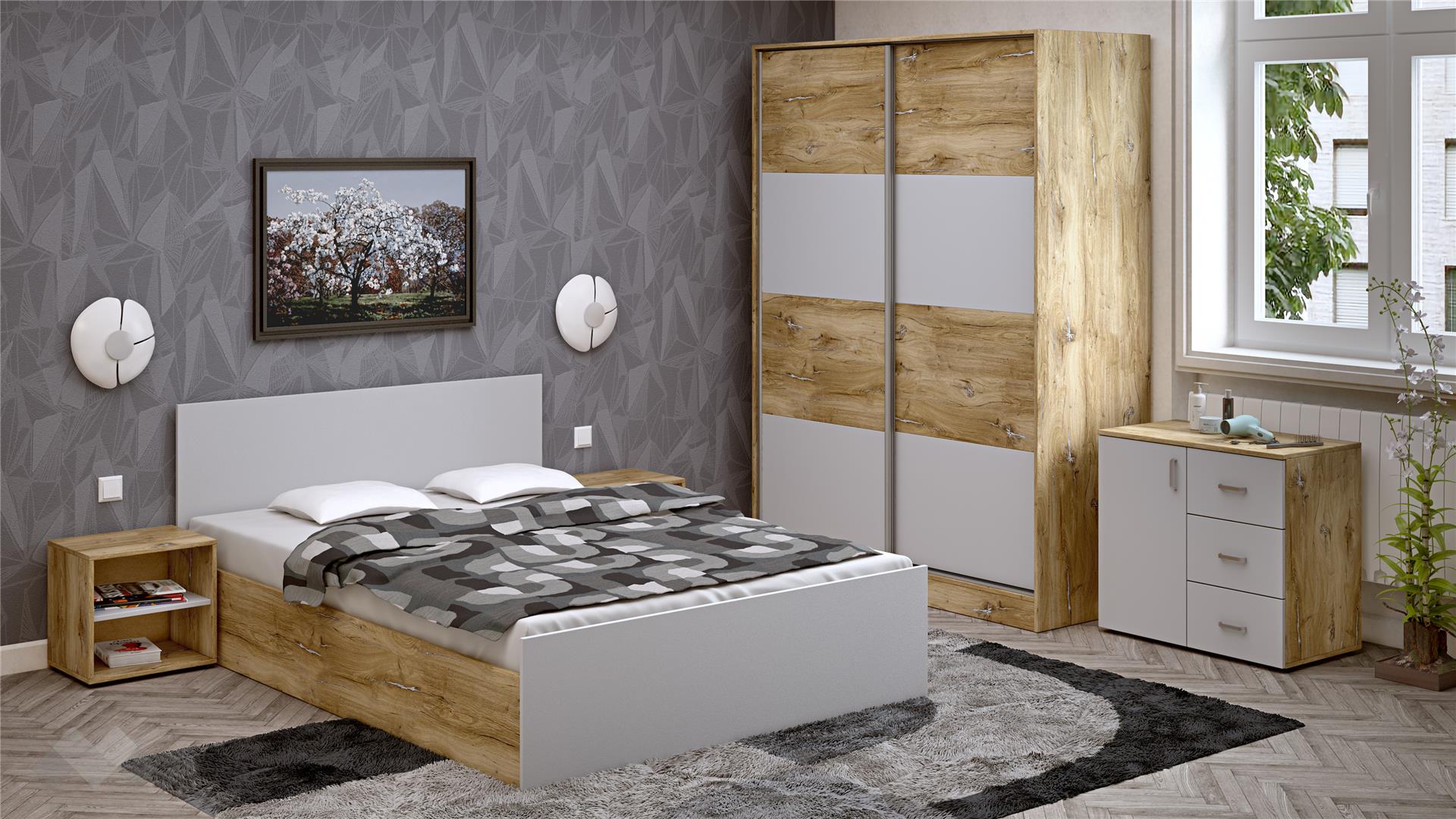 ⭐ Предимства: ✓ 16 мм ПДЧ ✓ спалня за матрак 140/200 ✓ механизъм за повдигане на матрака ✓ гардероб с плъзгащи врати ✓ лост за закачалки ✓ 4 рафта ✓ нощен шкаф ✓ отворен рафт ✓ скрин ✓ 3 чекмеджета ✓ 1 врата ✓ модерен дизайн ✓ качествена изработка