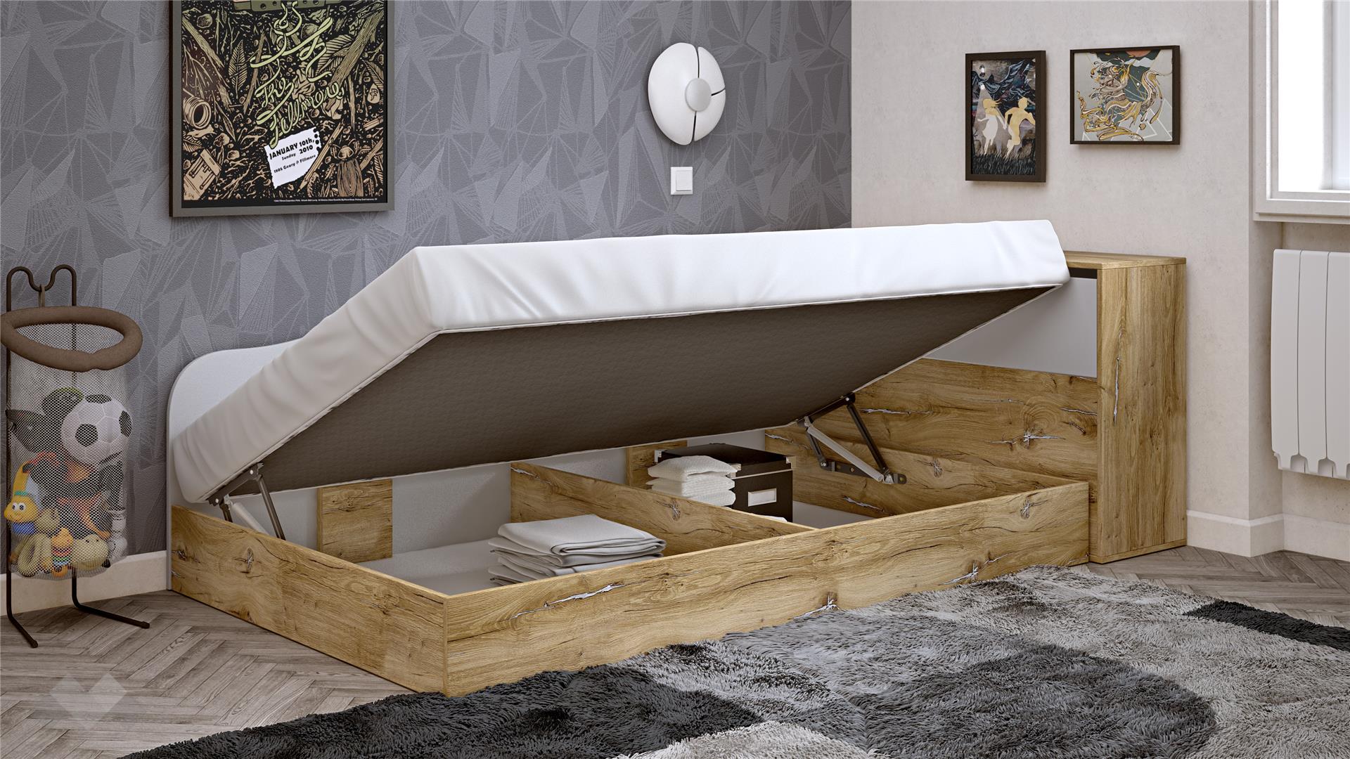 Пристата е подходяща за матрак с размер 120/190, а механизът за повдигане на матрака и компактната ракла ти предоставят изключително ценно допълнително място за съхранение на спално бельо, играчки, дрехи или други вещи, спомагайки за поддържане на реда в стаята.