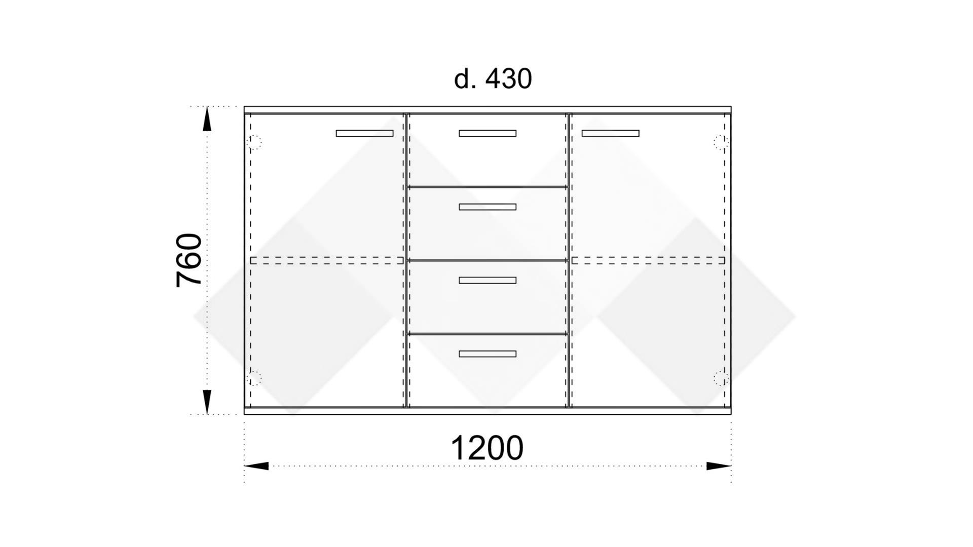 От гледна точка на функционалността - този скрин предлага всички удобства, които търсиш. Разполагаш с два високи шкафа, разделени на рафтове, където можеш да прибереш дрехи и по-обемни предмети, а в центъра са разположени четири чекмеджета, подходящи за организиране на бельо, аксесоари и други вещи. На широкия плот отгоре можеш да аранжираш любимите си сувенири, книги, фотографии или просто да ползваш като тоалетка за козметика и парфюми. Тези предимства превръщат скрина в подходяща мебел за всяка стая в жилището.