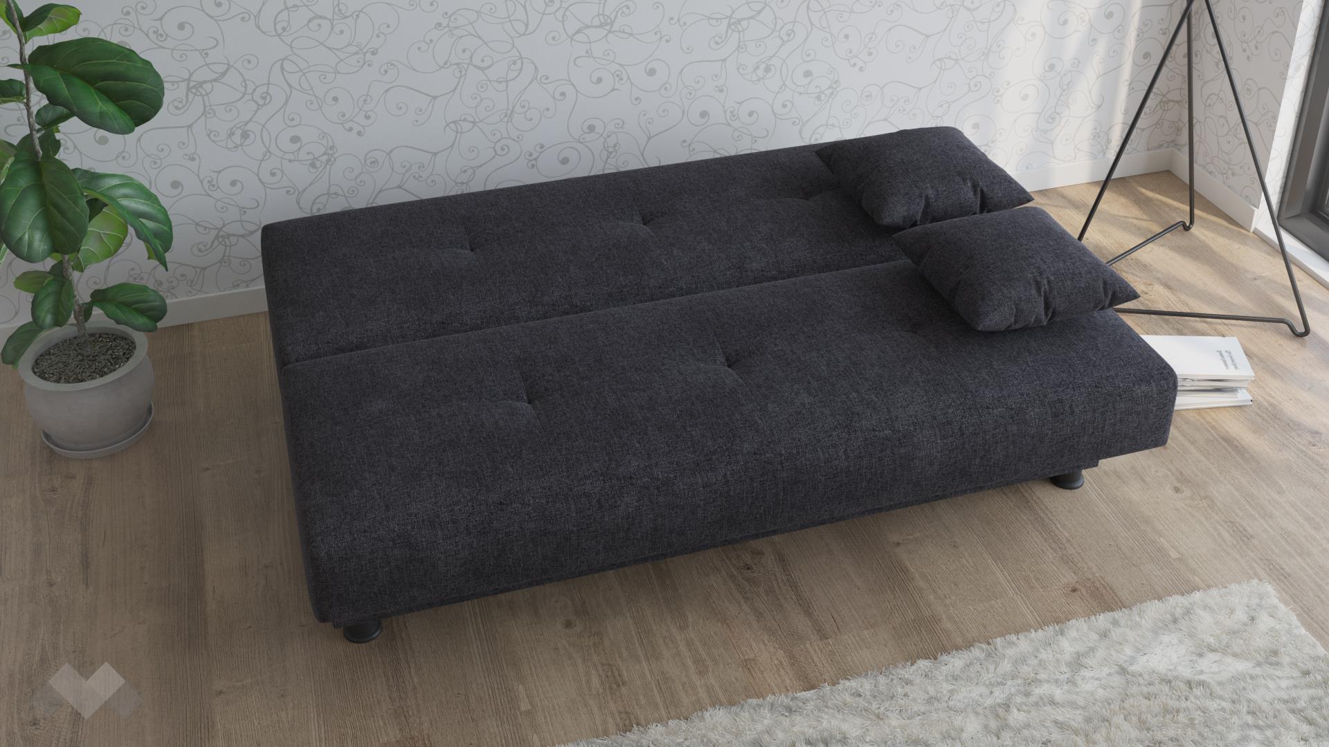 Можеш да го използваш и за сън - разтяга се лесно с клик-клак механизъм и разполага с голямо пространство за сън. Както седалката, така и облегалката са с пружинен пакет Бонел, което прави канапето много подходящо както за сън, така и за отмора. Двете възглавнички са подходящи за подлакътник или за сън.