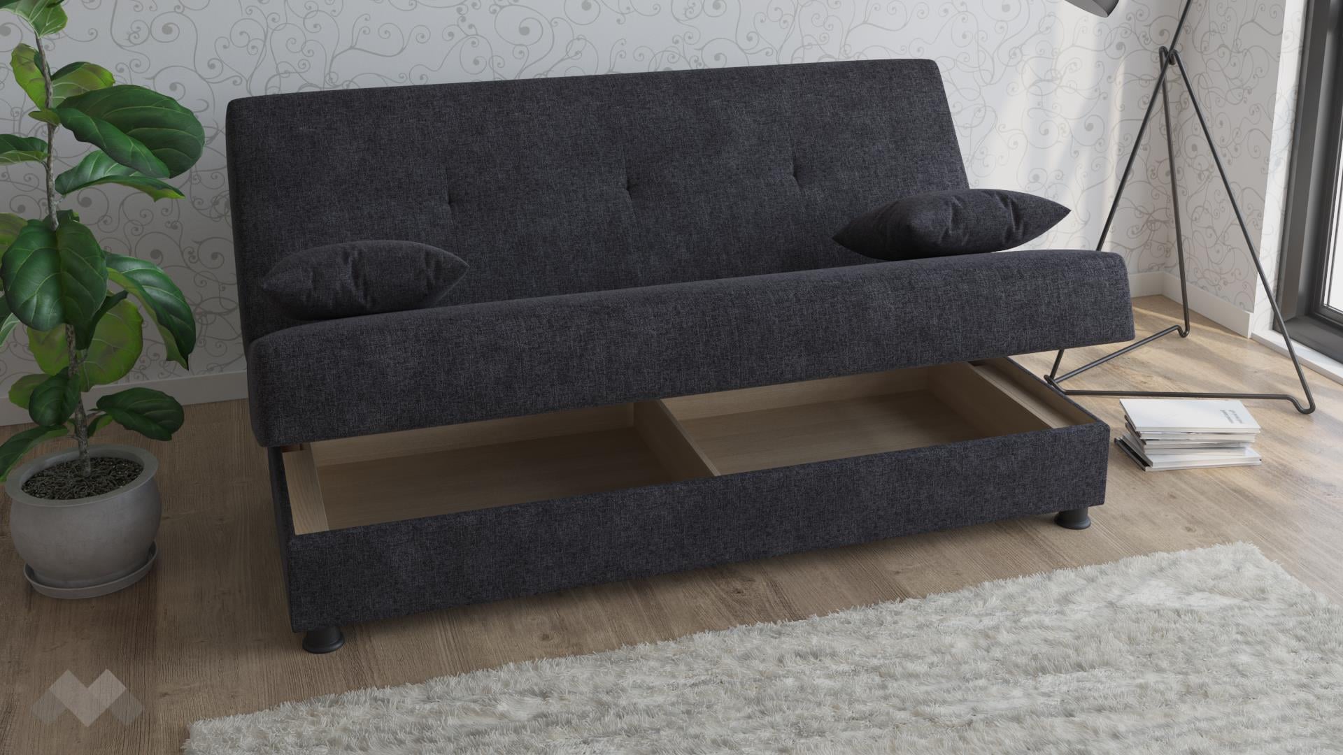 А за да е още по-практично, под цялата седалищна част се намира ракла, в която да прибереш възглавници, завивки и всякакви други вещи.