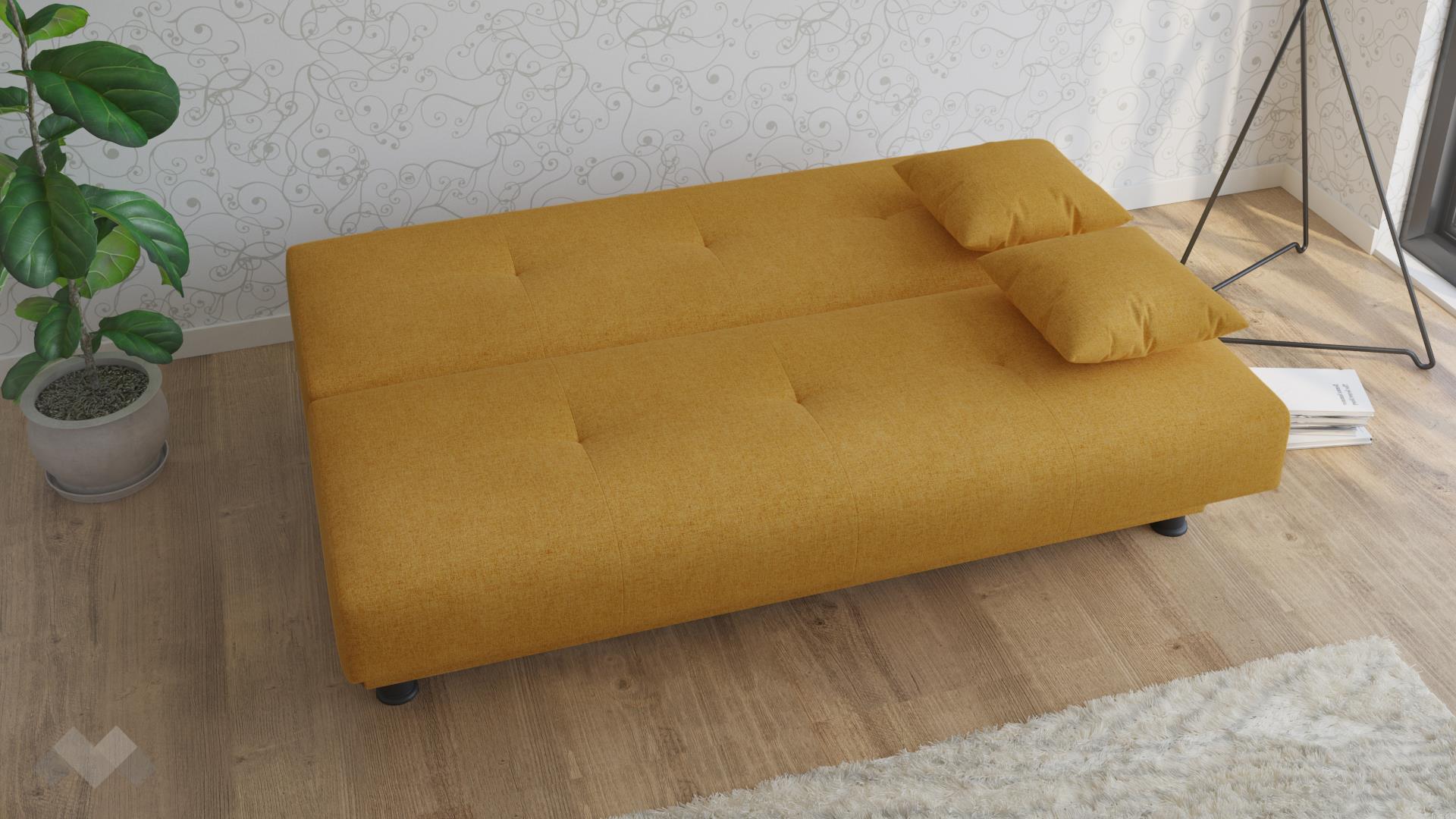 Можеш да го използваш и за сън - разтяга се лесно с клик-клак механизъм и разполага с голямо пространство за сън. Както седалката, така и облегалката са с пружинен пакет Бонел, което прави канапето много подходящо както за сън, така и за отмора. Двете възглавнички са подходящи за подлакътник или за сън.