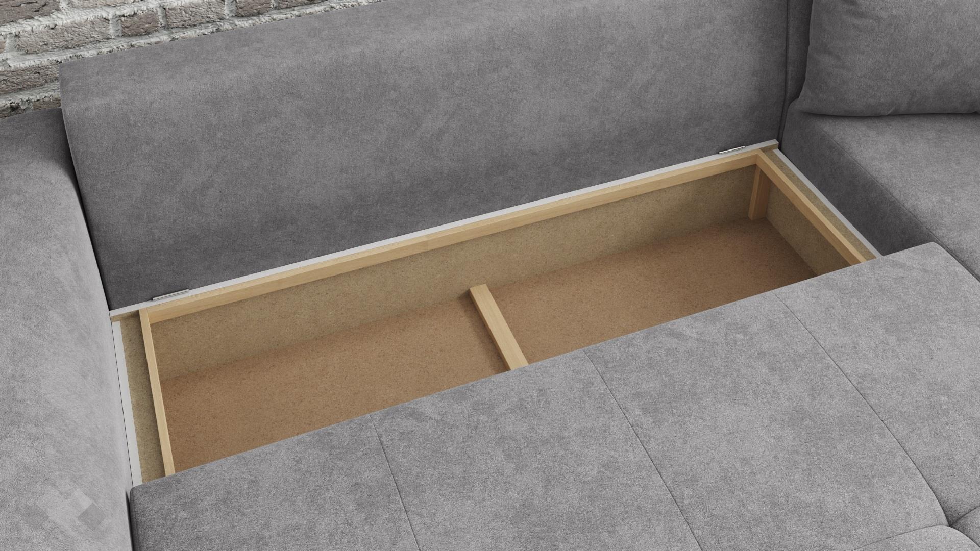 Освен това, ъгловият диван Сиера има ракла, която предлага дискретно място за съхранение на завивки, възглавници и други вещи, които би искал да са ти под ръка, но същевременно прибрани. Благодарение на функцията сън, диванът за секунди се трансформира в просторно легло с площ за сън 154/246 см - удобно решение както за гости, така и за ежедневна употреба.