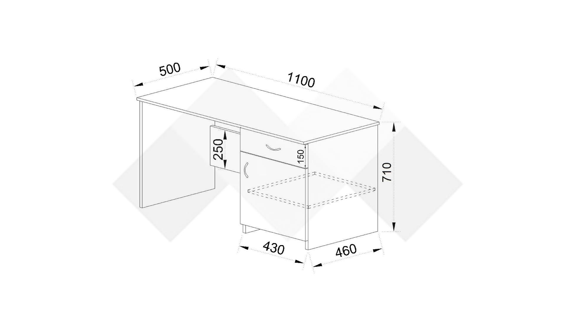 Бюрото разплага с чекмедже и с шкаф с вратичка. Чекмеджето е снабдено със сачмени водачи с пълно изтегляне и плавно прибиране, характеризиращи се със стабилност, устойчивост и издръжливост при по-голямо натоварване. Отваряйки вратата на шкафа ще откриеш удобен вътрешен рафт, което ще ти осигури оптимално използване на пространството.