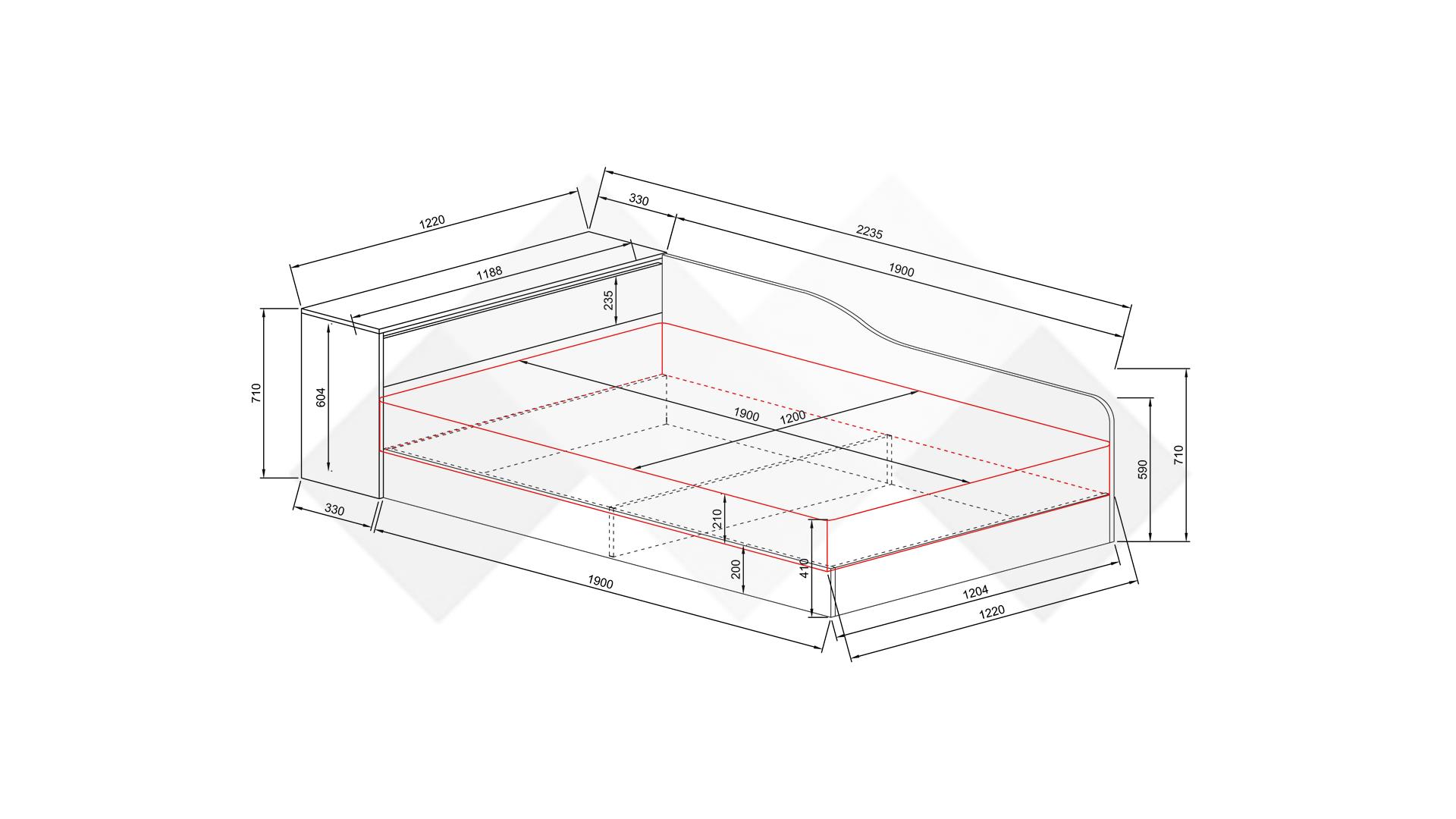 Легло: Д: 190 см Ш: 122 см В: 71 см