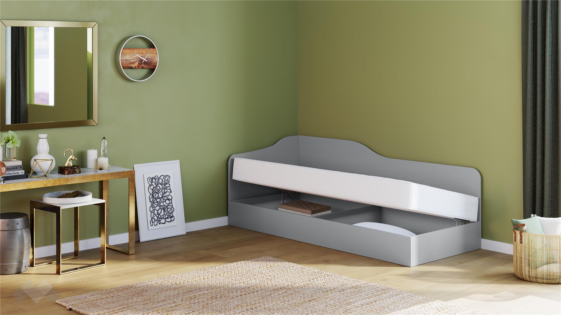 Подходящо за матрак с размери 82/190 см, леглото е идеално за детски стаи, гостни или малки спални. Леглото е с универсално разположение – по време на монтажа, изолиращата табла и механизма могат да се монтират отляво или от дясно, така че да пасне идеално на стаята. Включеният повдигащ пружинен механизъм осигурява лесен и бърз достъп до подматрачното пространство, което е перфектно за съхранение на спално бельо, играчки, сезонни дрехи и други вещи.