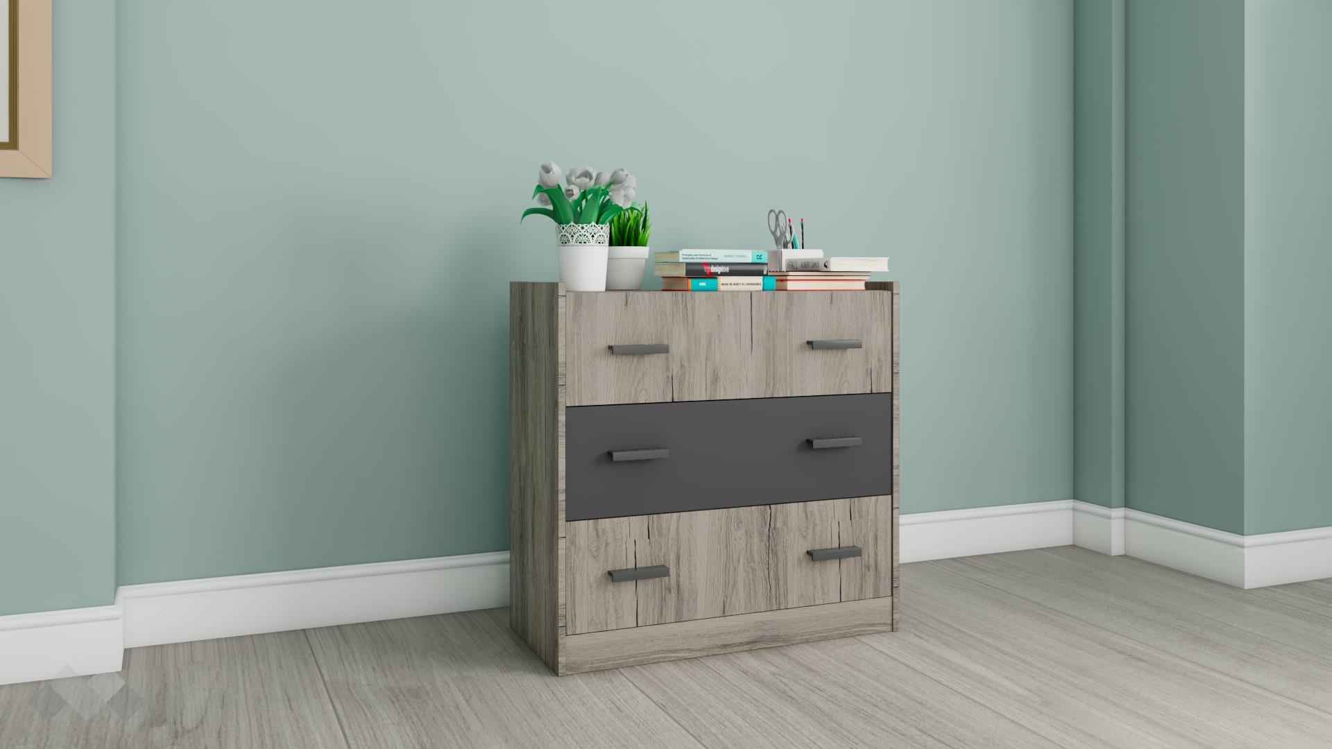 ⭐ Предимства: ✓ 3 чекмеджета ✓ компактен и практичен ✓ модерен винтидж декор с WNR структура ✓ качествена изработка ✓ 16 мм ПДЧ