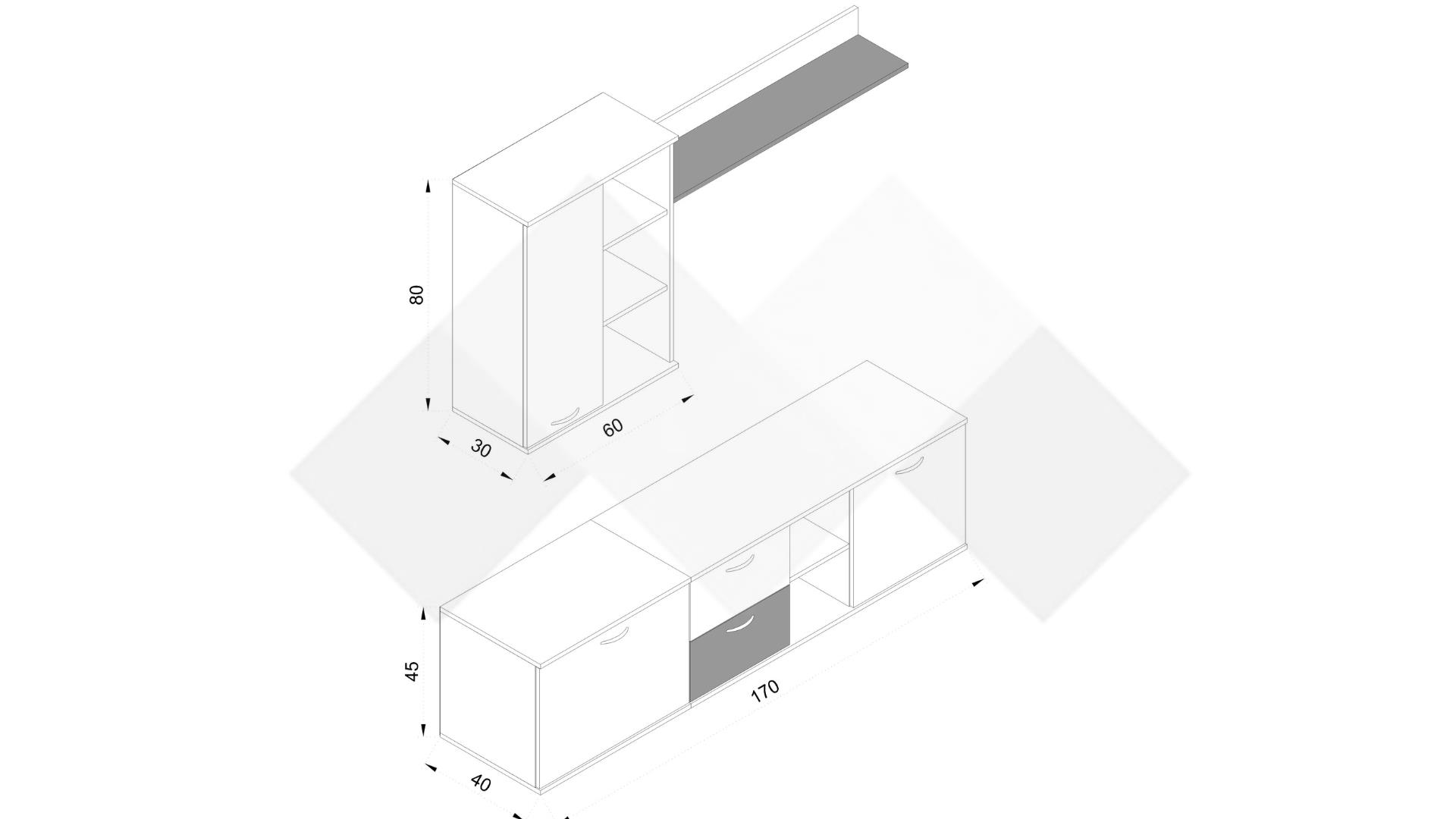 Горен шкаф: Д: 60 см Ш: 30 см В: 80 см