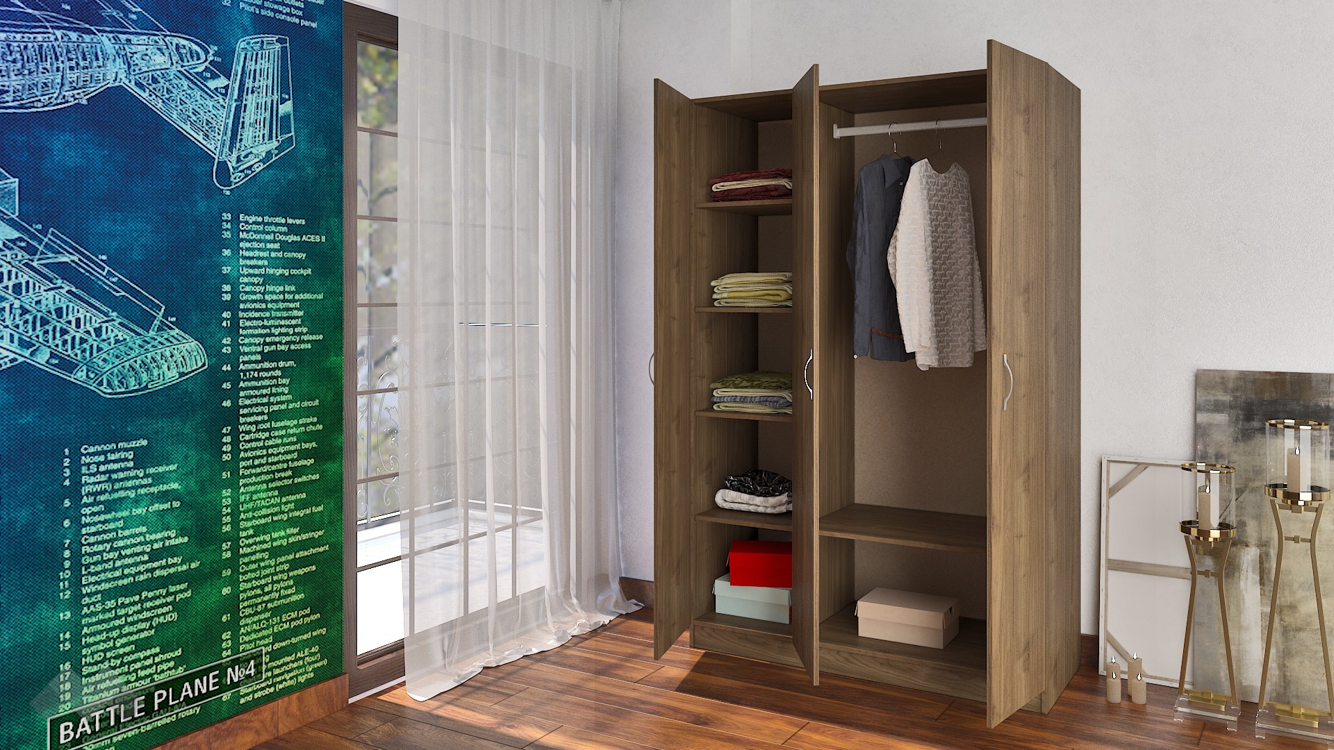 Гардероб Спрингфийлд добре се съчетава както с цветове в сивата, така и с цветове в кафявата гама. Той е трикрилен, с 5 рафта и лост за закачалки. Има добре обмислено разпределение, което ще ти позволи да подредиш добре всички свои дрехи и аксесоари прилежно. Можеш да използваш рафтовете за съхранение на сгънати дрехи, а на лоста да закачиш всичко, което искаш да ти бъдат бързо под ръка.
