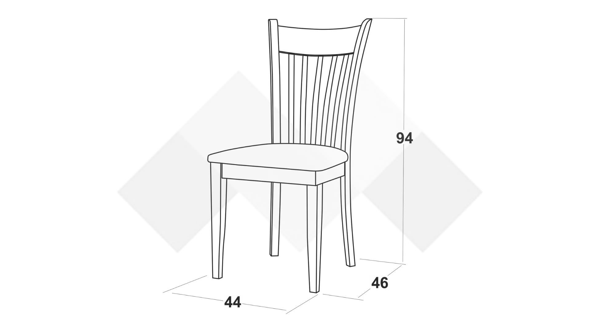 Столът е със здрава конструкция от естествена букова дървесина за устойчивост и стабилност, а лаковото покритие добавя елегантност. Седалката е проектирана с твърда основа, тапицирана с дунапрен за повече комфорт при седене и завършен със здрава текстилна дамаска, лесна за поддръжка.