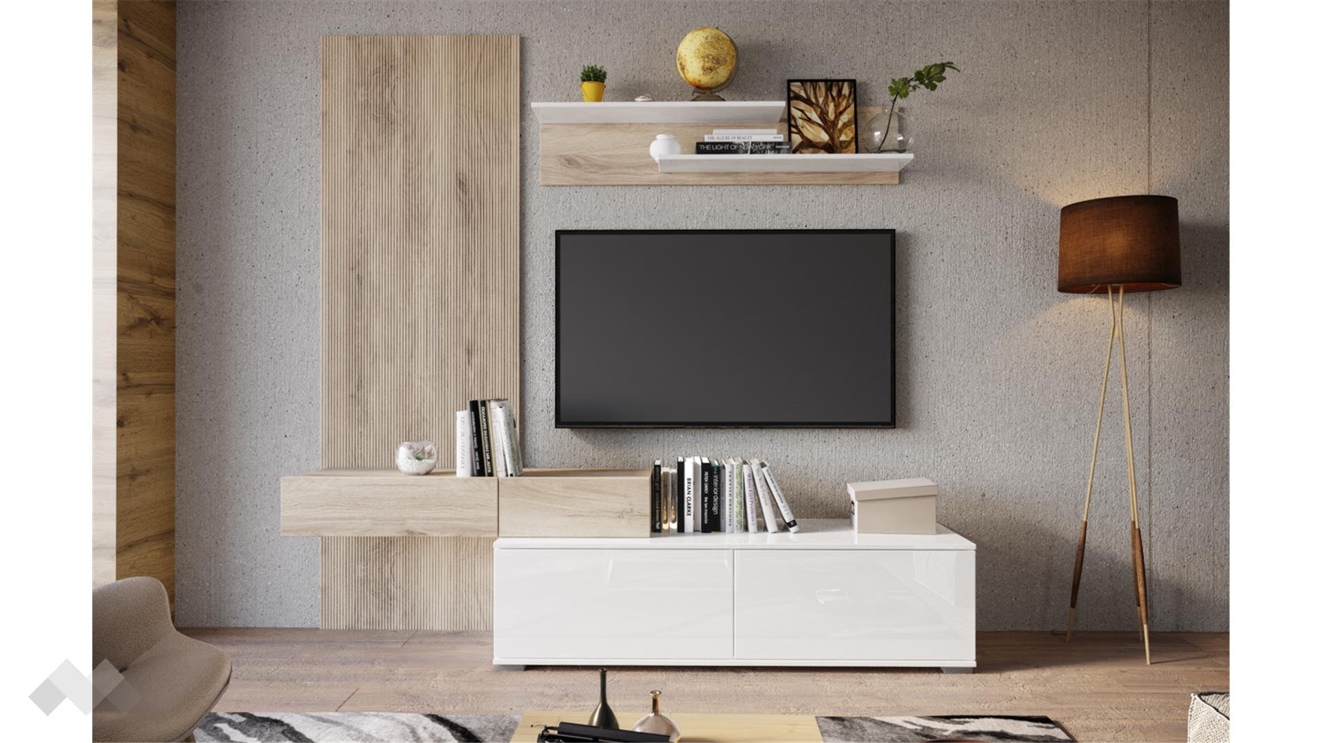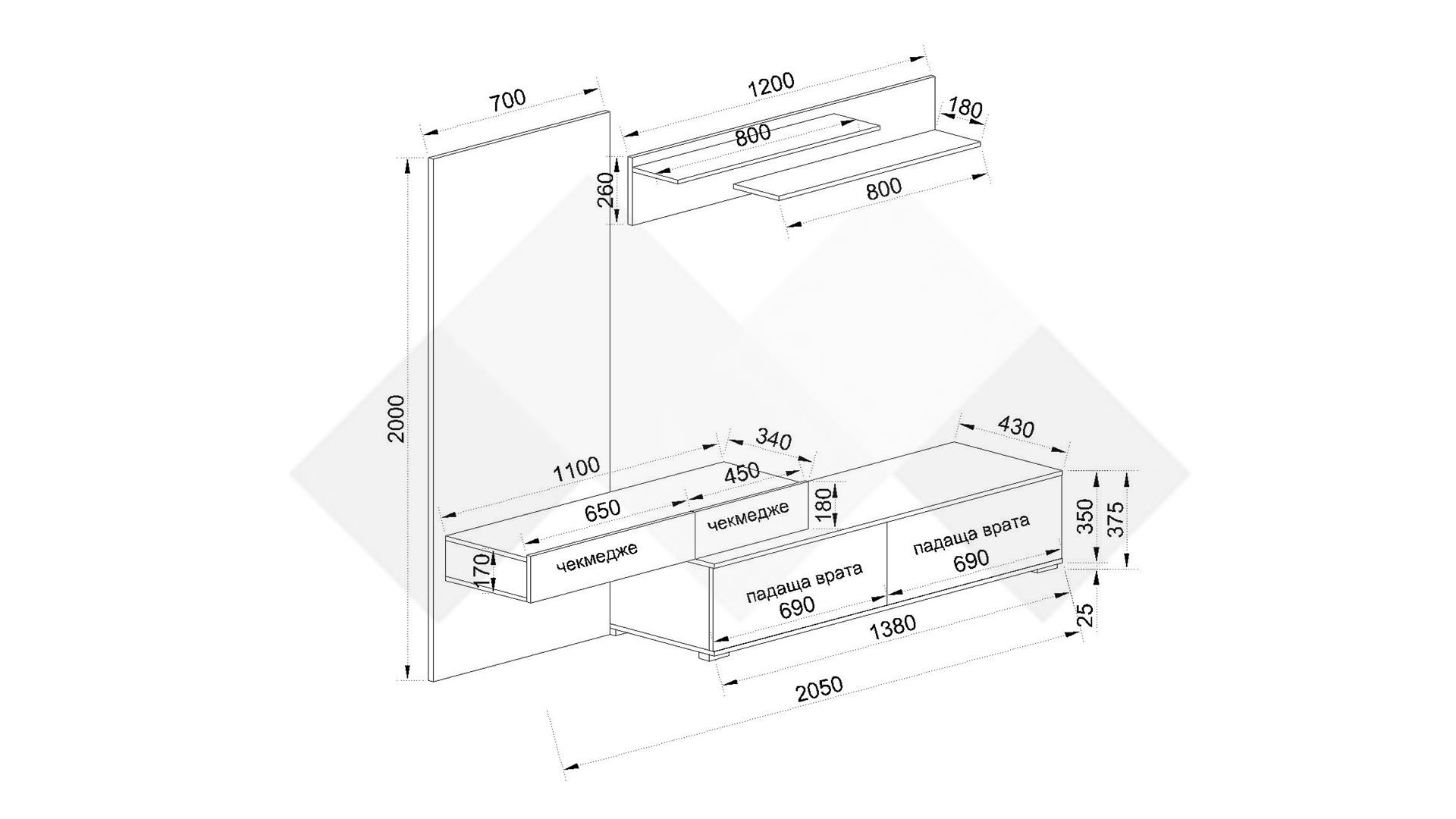 ⭐ Предимства: ✓ 18 мм МДФ ✓ 16 мм ПДЧ ✓ 2 чекмеджета ✓ 2 шкафа ✓ етажерка ✓ механизъм за плавно затваряне ✓ функционална и практична ✓ разчупен дизайн ✓ качествена изработка