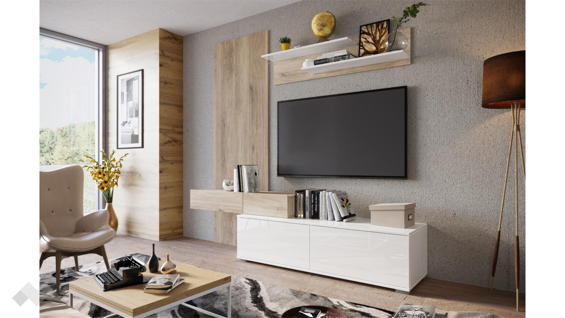 Моделът разполага с две чекмеджета с пълно изтегляне и плавно затваряне и два шкафа, снабдени с пуш бутони и падащи вратички. Там можеш да съхраняваш всяка вещ, от която модерният хол се нуждае.