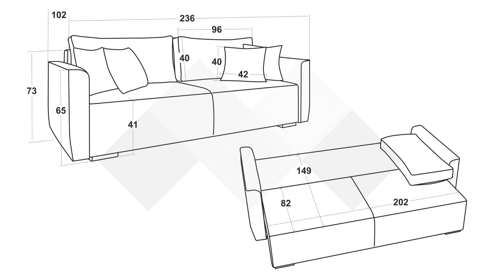 Д: 236 см Ш: 102 см В: 73 см