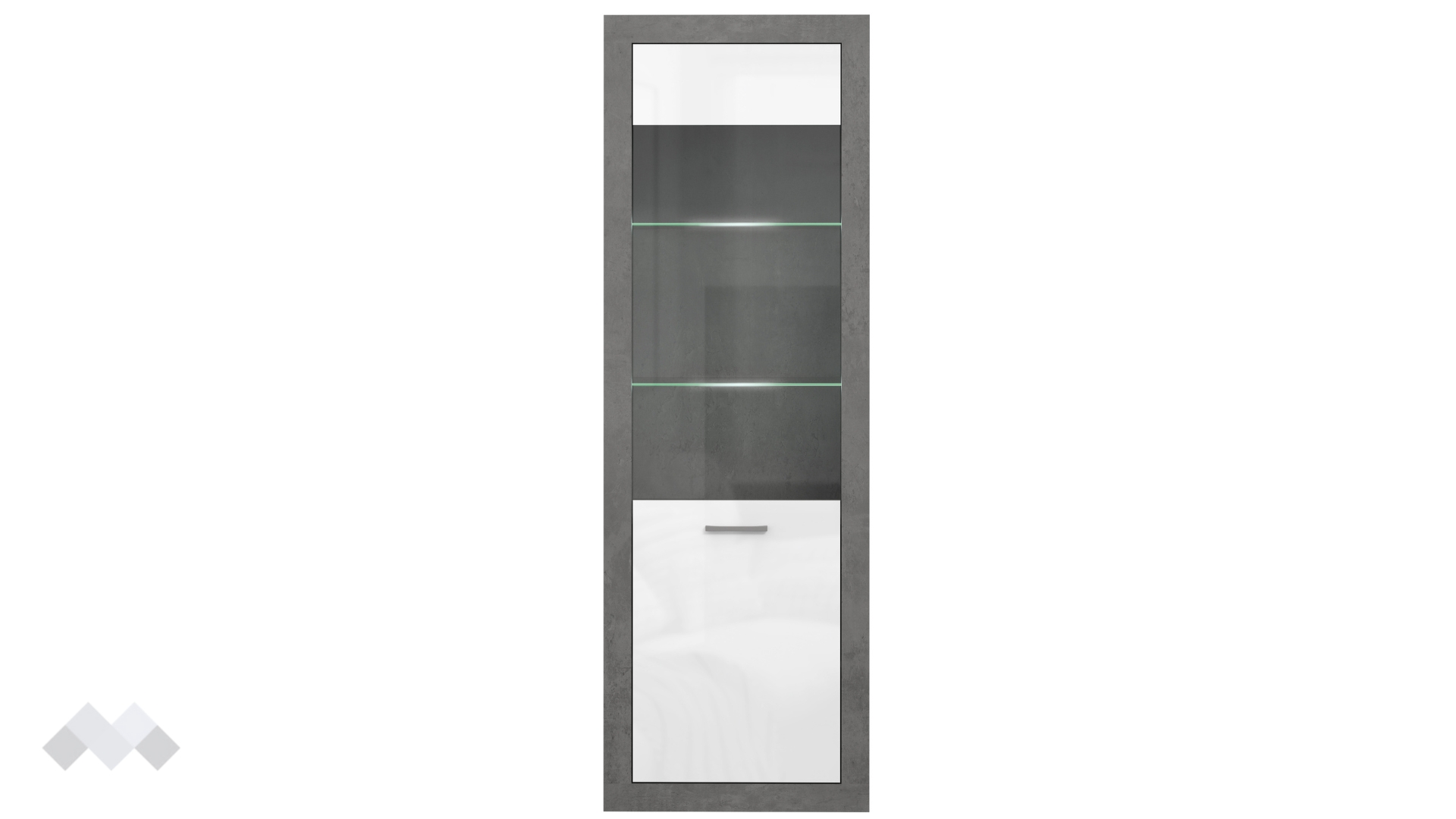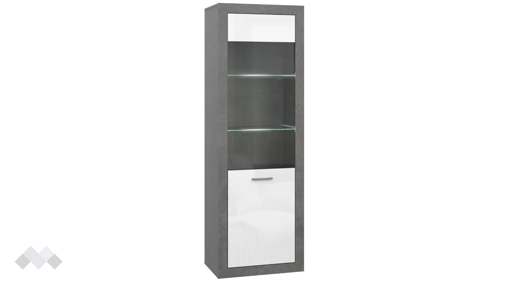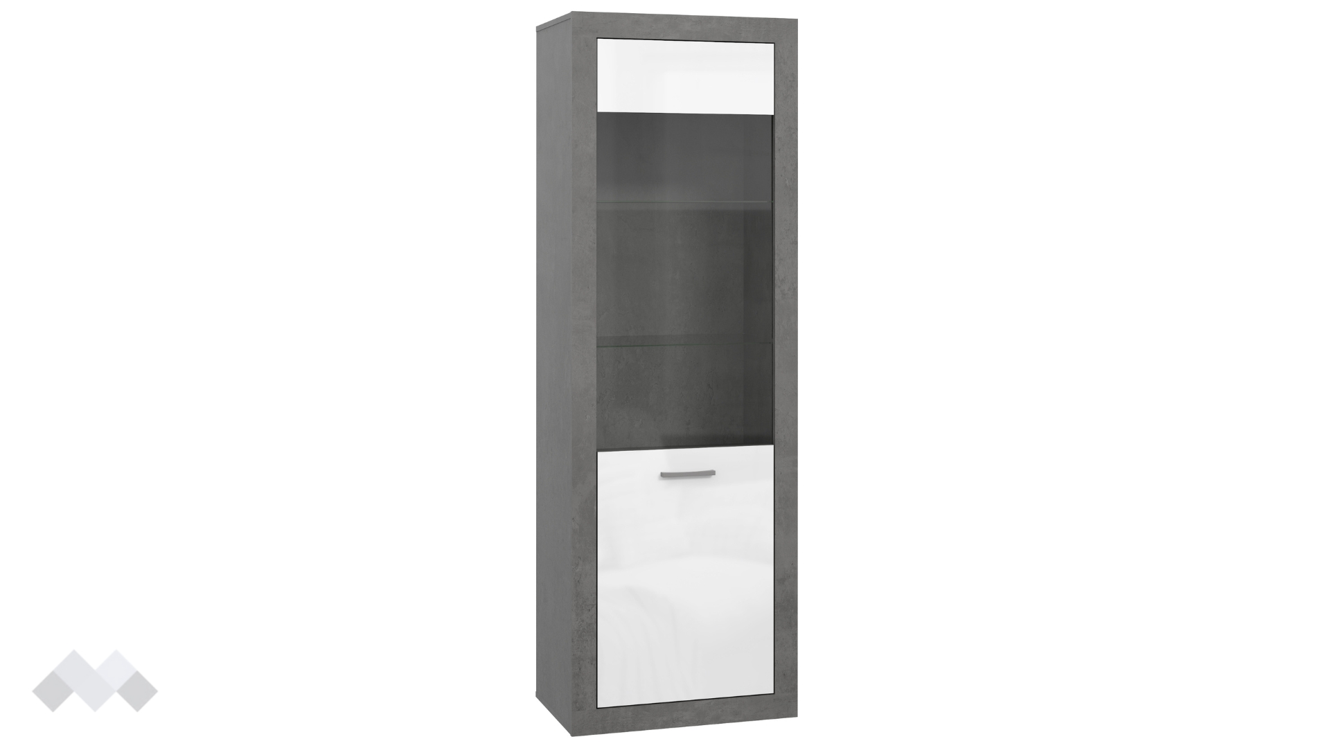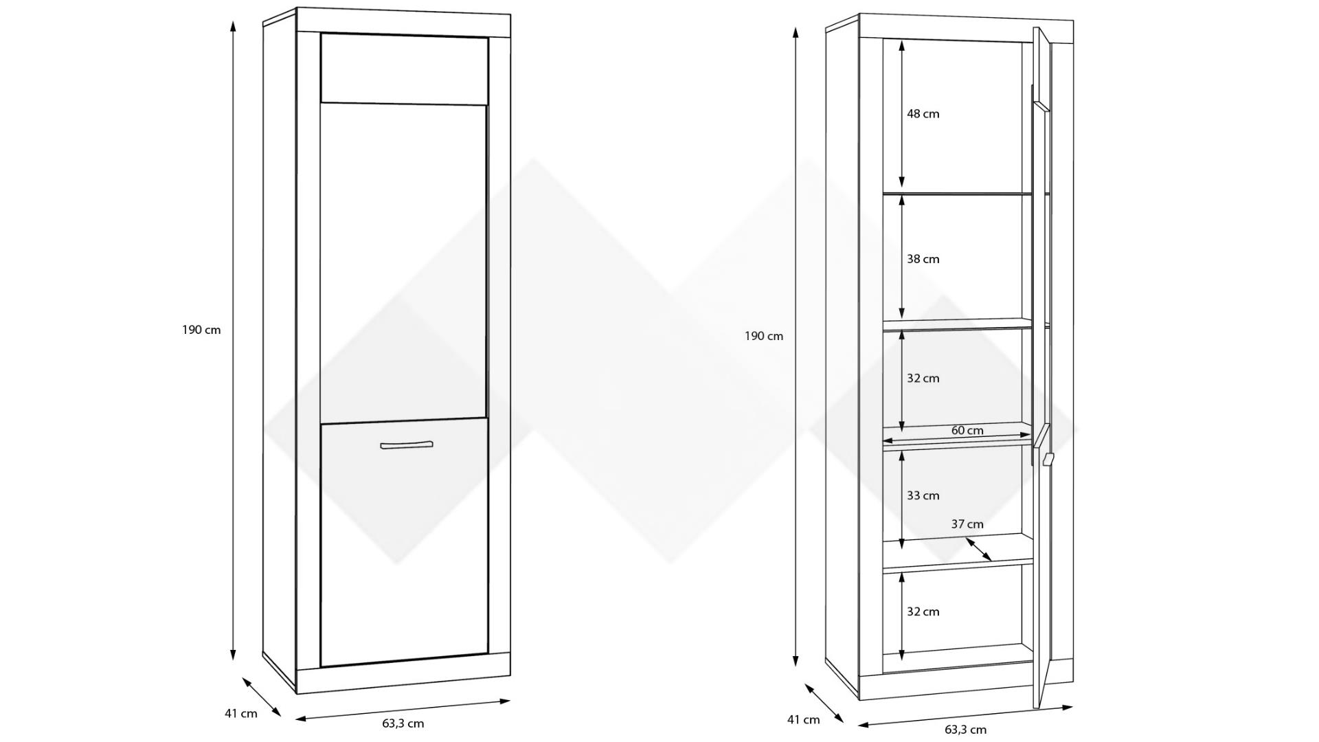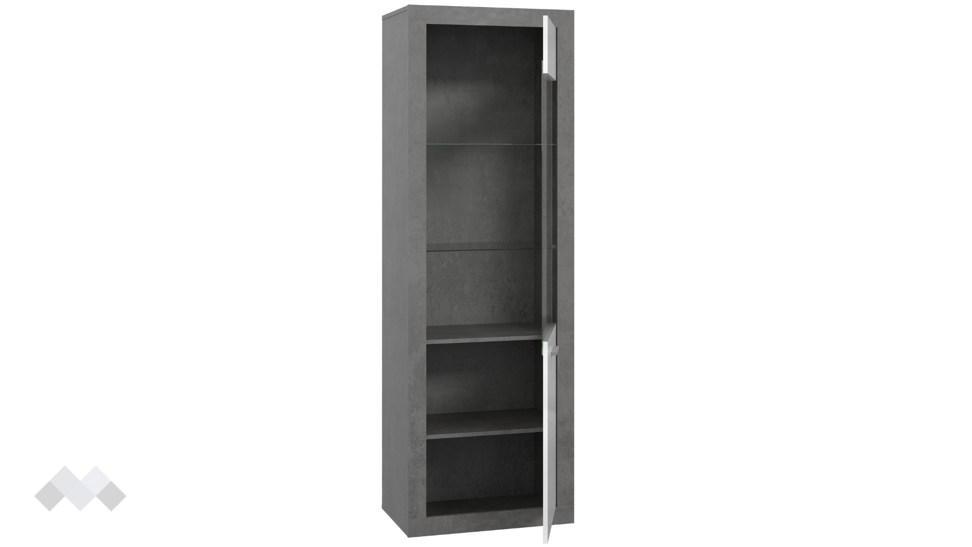Висок шкаф с витрина Требия е готов да приюти красиви сервизи, скъпи украси и декорации. Благодарение на него, те ще са на сигурно място и в същото време няма да убегнат от погледите на гостите. Той е подходящ както за трапезария, така и за всекидневна.