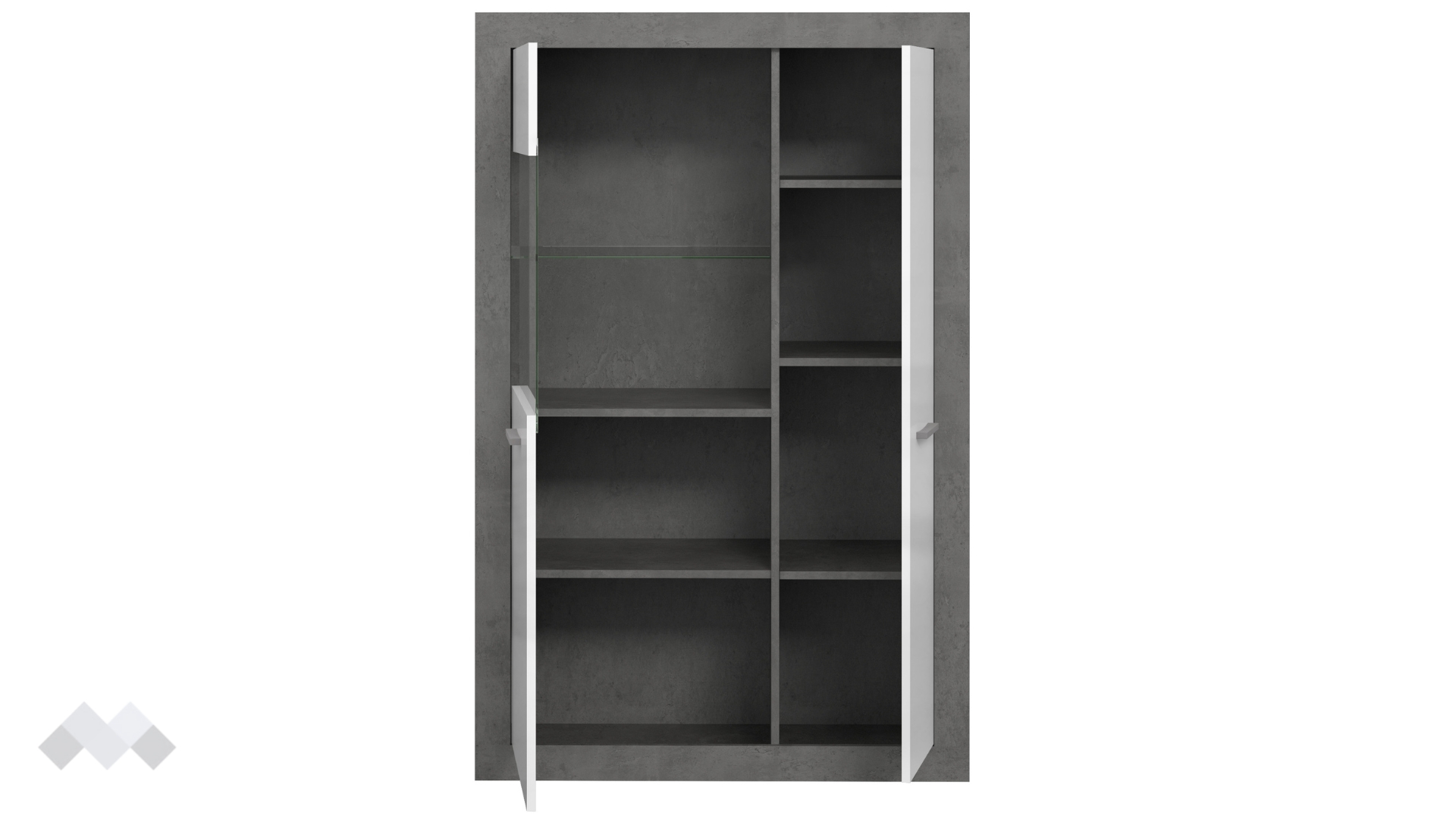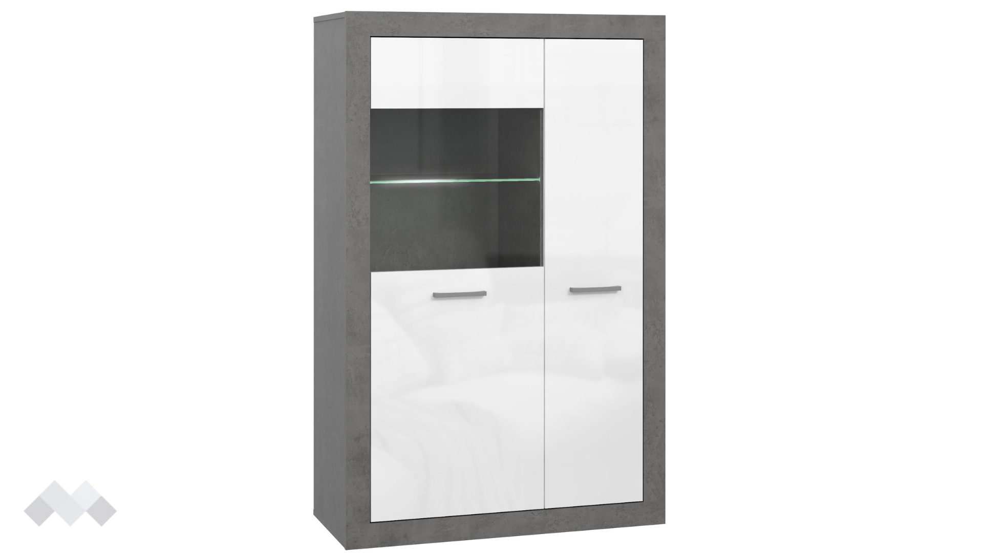 Висок шкаф с две вратиТребиясиво с бял гланц с витрина