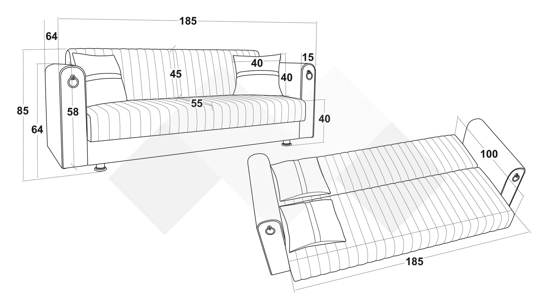 Диванът има здрава конструкция от масивна дървесина и вложен 10 см. пенополиуретан, отличаващи се с устойчивост за дълъг период на употреба.