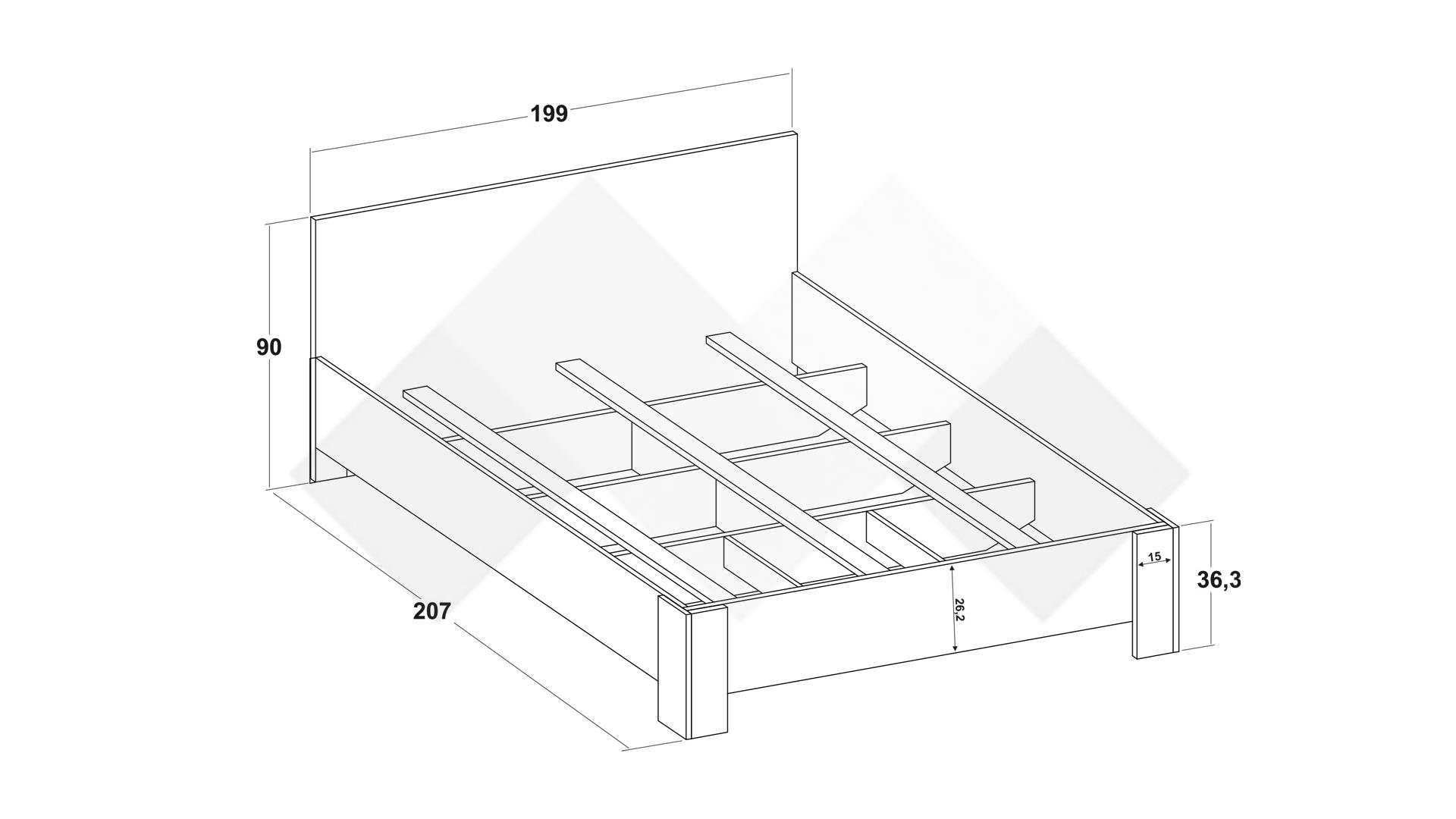 Спалнята няма възможност за поставяне на механизъм за повдигане на матрака и е подходяща както за еднолижев, така и за двулицев матрак.